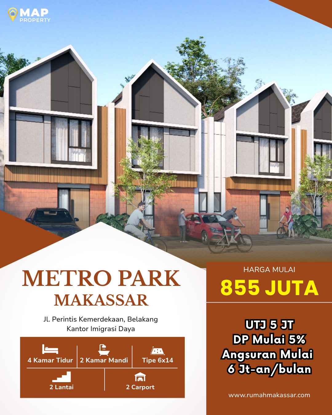 Ingin memiliki rumah modern dengan lokasi premium di perintis kemerdekaan makassar? Metro Park Makassar adalah pilihan tepat untuk Anda. Terletak di Jl. Perintis Kemerdekaan, tepat di belakang Kantor Imigrasi Daya, hunian ini menawarkan kenyamanan tinggal di lokasi strategis yang mudah dijangkau dari berbagai fasilitas kota.