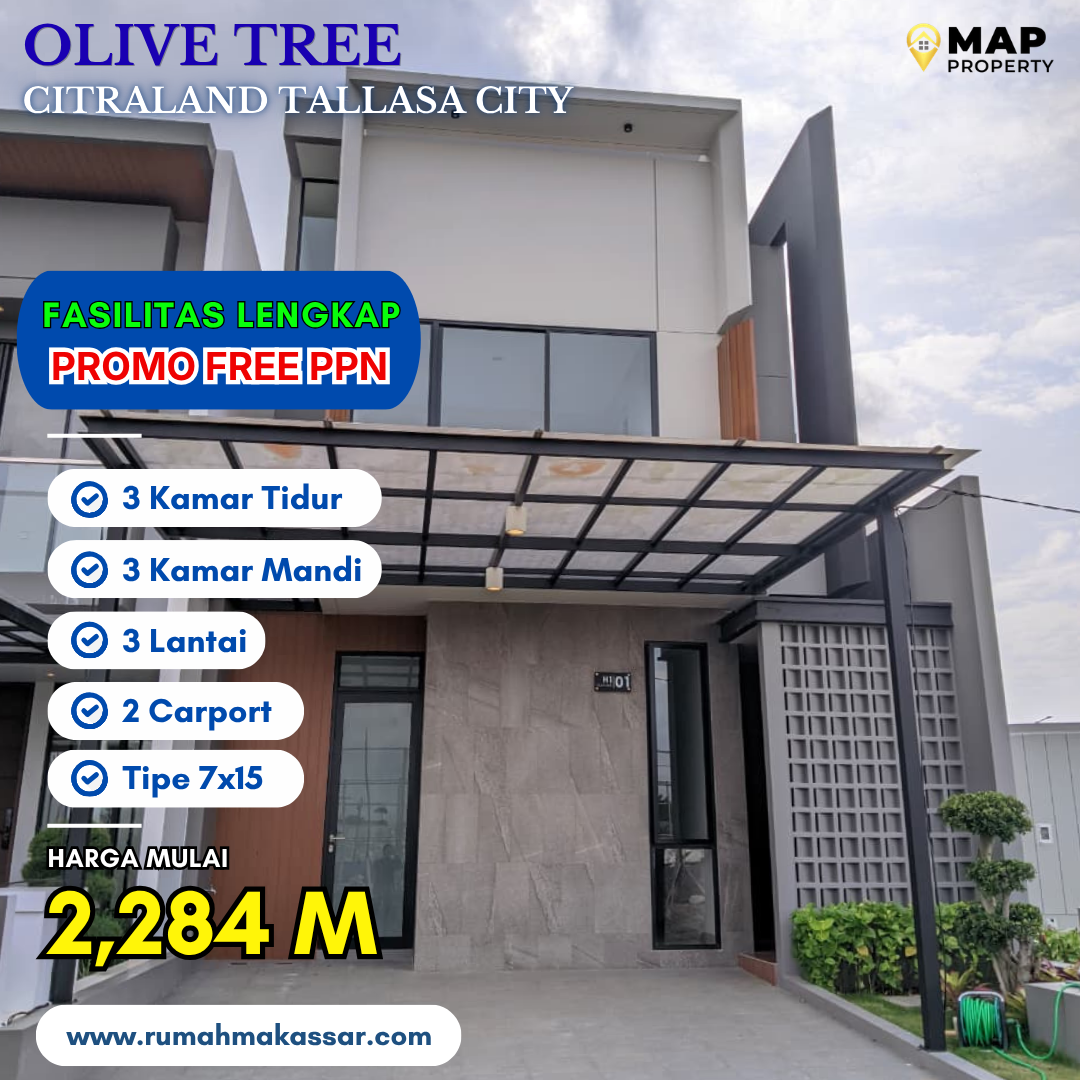 Rumah 3 Lantai Citraland Tallasa City Promo Free PPN, Terletak di kawasan strategis Makassar dengan harga terbaik dan promo besar Tipe Hessonite di Cluster Olive Tree Citraland Tallasa City adalah pilihan tepat untuk hunian keluarga maupun investasi jangka panjang.